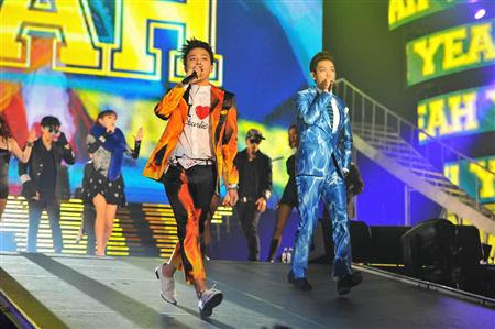 • GD & TOP oficialmente ha invadido el escenario con Oh Yeah. TOP llevaba un traje de color azul metálico, mientras que GD demanda de impresión de incendios